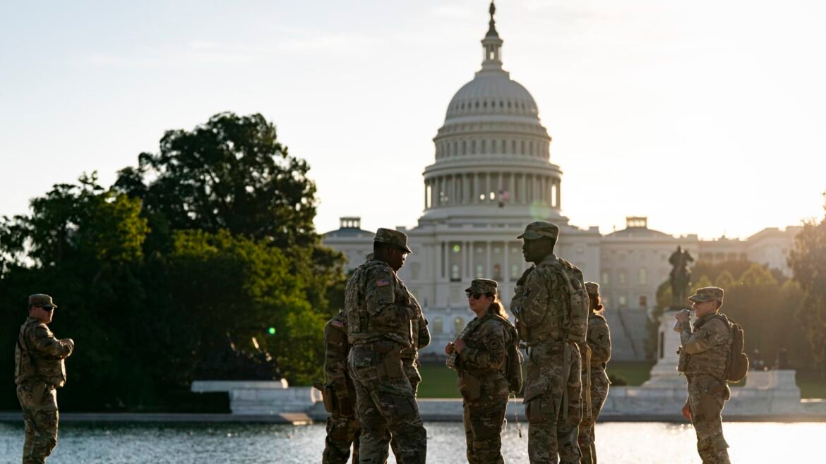 أفراد من الحرس الوطني يقومون بدورية بالقرب من مبنى الكابيتول الأمريكي في 1 أكتوبر 2025 في واشنطن العاصمة.