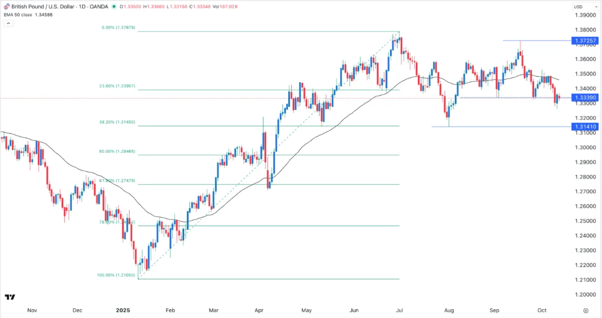The daily timeframe chart shows that the GBP/USD pair has retreated in the past few days. It has moved from a high of 1.3727 in September to the current 1.3335. It dropped below the 23.6% retracement level at 1.3390.